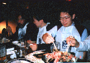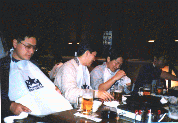 HOKKE'95 初日終了後に開かれた、札幌ビール園でのビール+ジンギスカンによ る懇親会の写真から、いくつかピックアップしました。全ての写真はクリッカブ ルで、クリックすると拡大写真が見れます。